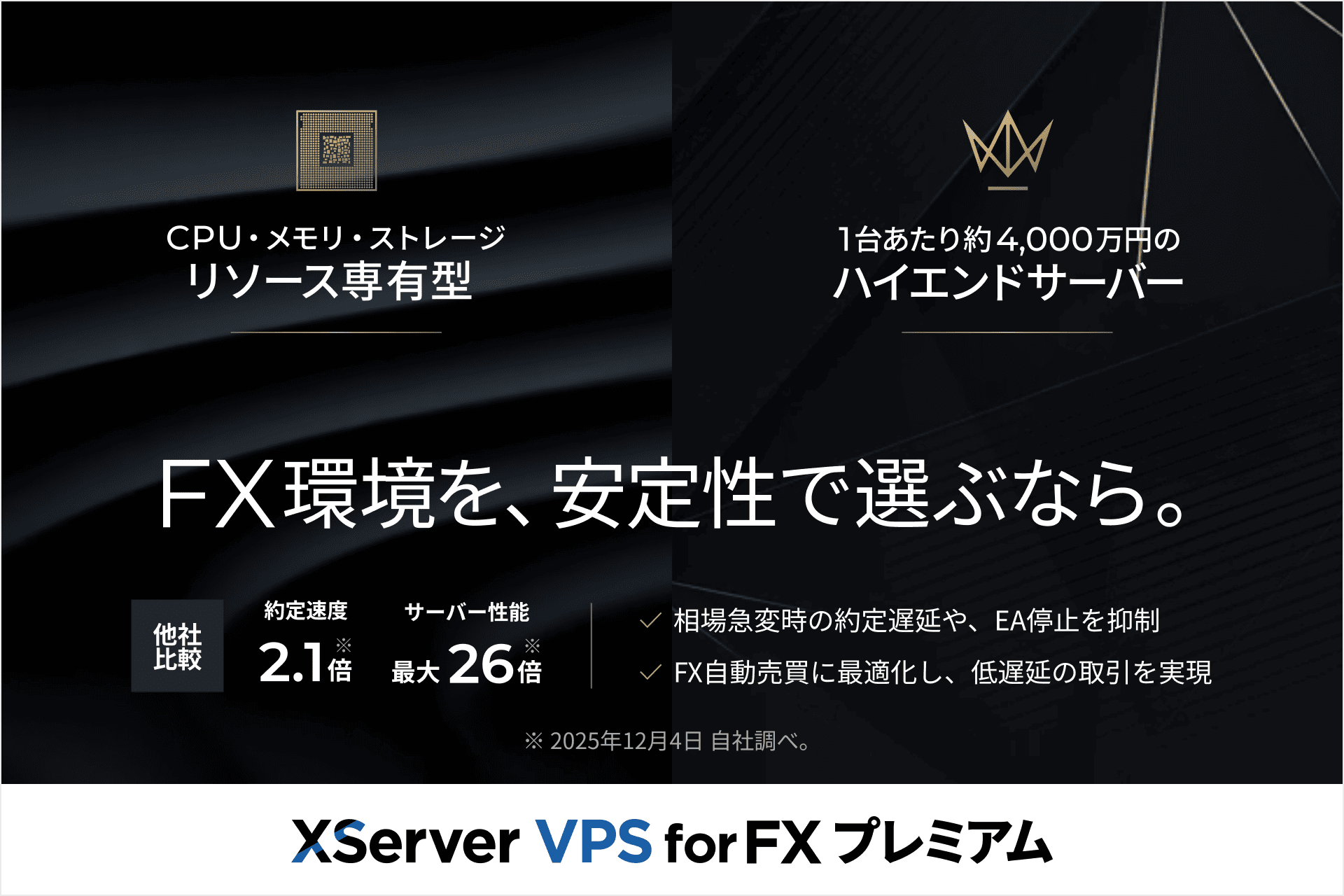 【国内唯一】リソース専有により取引集中時でも安定稼働!FX自動売買専用VPS『XServer VPS for FX プレミアム』の提供を開始