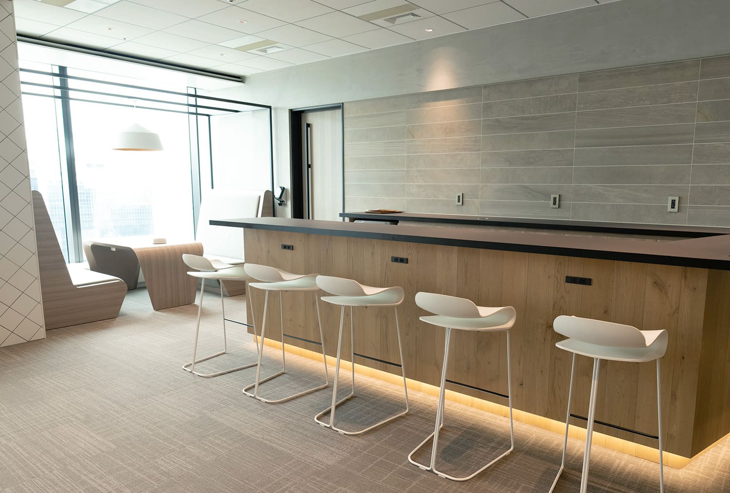 飲食しながら会話ができるよう、バーカウンターを設けています。少人数でのランチやちょっとしたミーティング、部署全体でのランチ会などに利用されています。